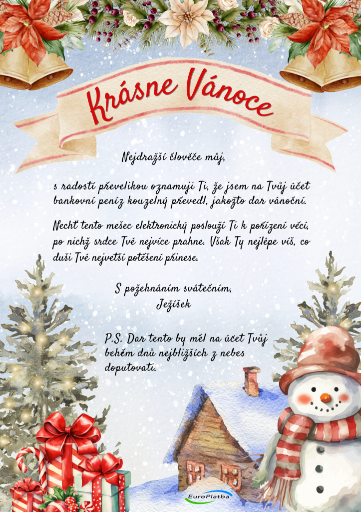 Posíláte peníze do zahraničí jako vánoční dárek? Pošlete spolu s platbou také krásný dopis od Ježíška a proměňte obyčejný bankovní převod v kouzelný vánoční zážitek.